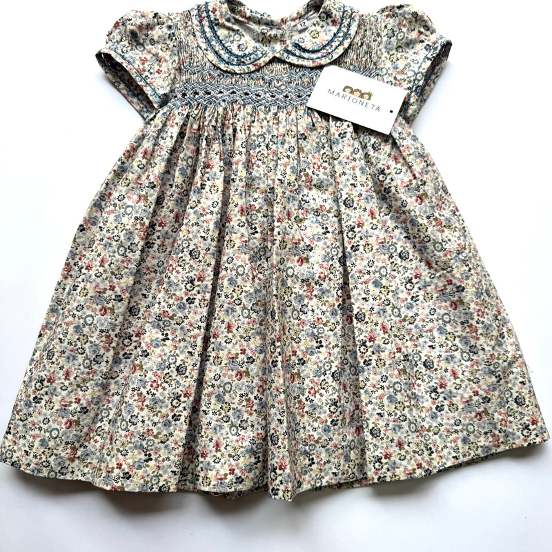 Vestido bordado hecho a mano estampado con florecitas rojas para niña | MARCA MEXICANA