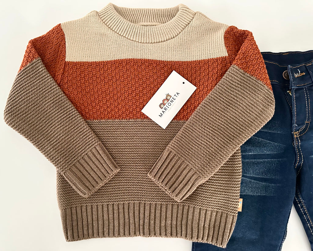 Conjunto dos piezas sueter cafe y pantalon caki para niño MARCA MEXCANA