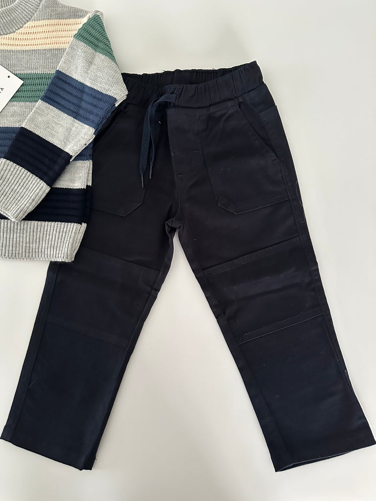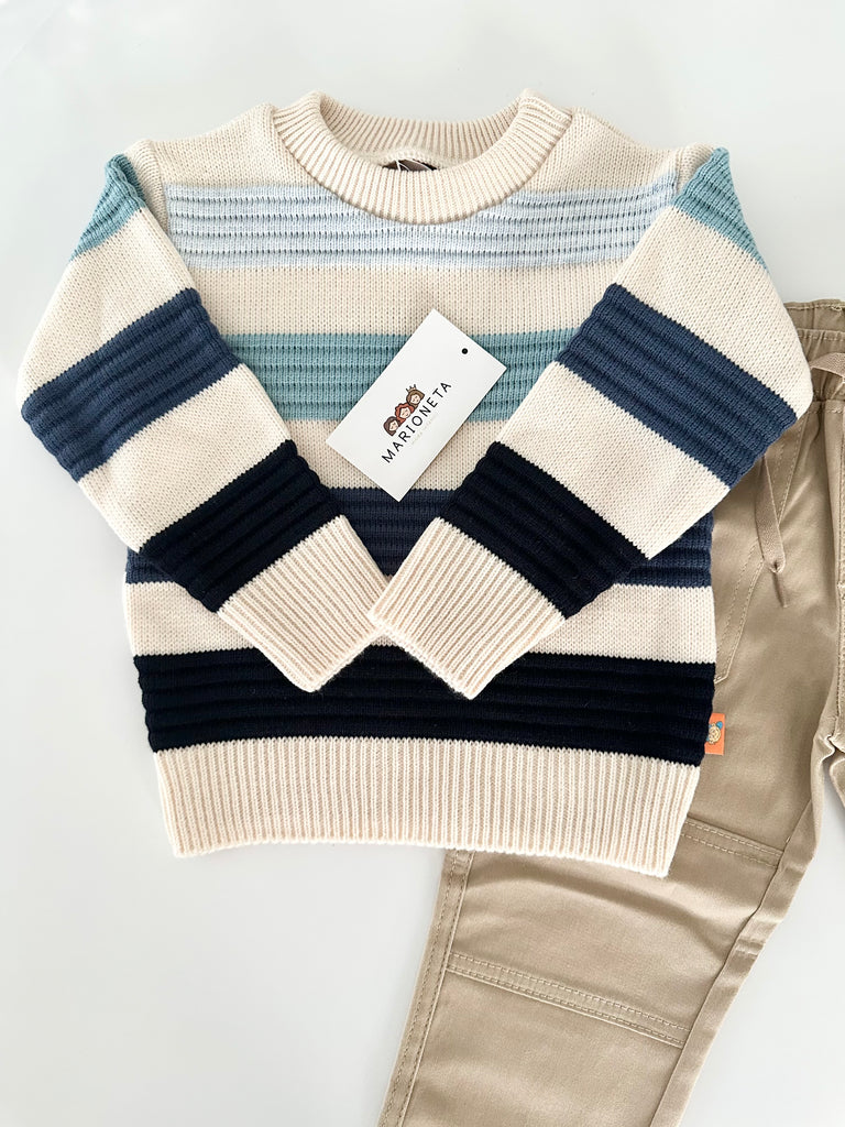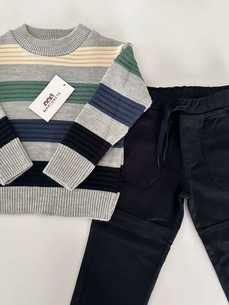 Conjunto dos piezas sueter gris o beige a rayas con pantalon para niño MARCA MEXICANA