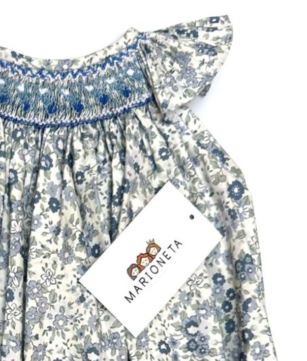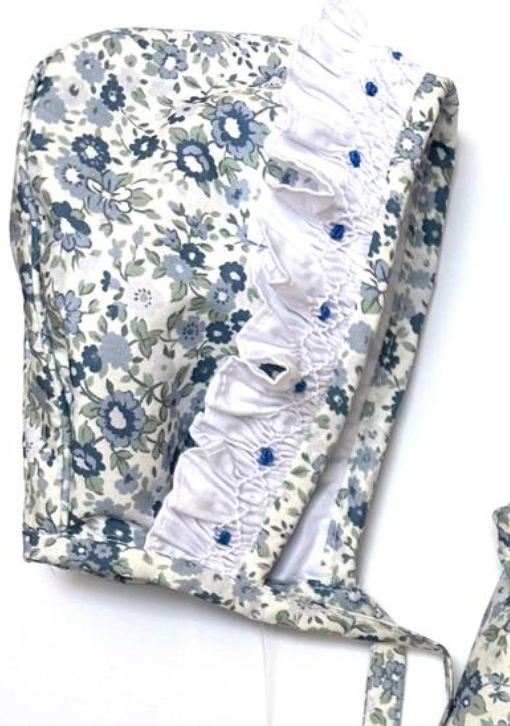 Pañalero y gorra bordado hecho a mano color azul estampado de flores .| MARCA CARPI